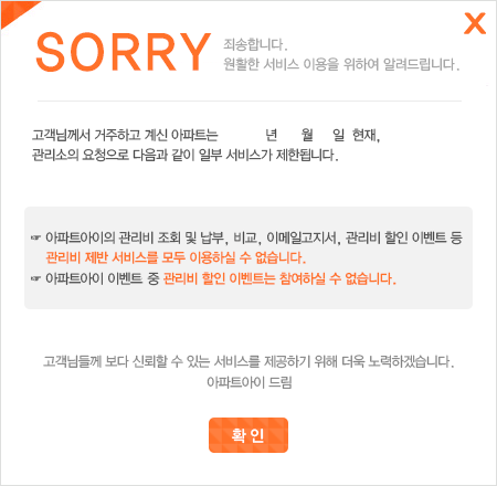 ¾ÆÆÄÆ®¾ÆÀÌ¿¡¼­ °ü¸®ºñ ³³ºÎ¸¦ ¿øÇϽô °æ¿ì ¸ðµç ÀÚµ¿ÀÌü°¡ ÇØÁöµÇ¾î¾ß ÀÌ¿ëÀÌ °¡´ÉÇÕ´Ï´Ù.